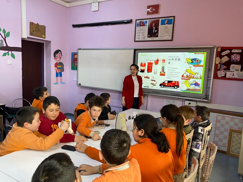 Kırıkkale, Çevre, Şehircilik ve İklim Değişikliği İl Müdürlüğü personeli Gökçen YÜKSEL ve Hacer ŞEN tarafından Keskin İlçe Milli Eğitim Müdürlüğü’ne bağlı Bilge Kaan İlkokulu’nda “Elektrik, Elektronik ve Metal Atık Şubat Ayı Teması” kapsamında söz konusu atıkların geri dönüşümüne yönelik olarak farkındalık oluşturulması maksadıyla öğrencilere eğitim verilmiştir. Bu kapsamda öğrencilerin getirdiği elektronik atıklar geri dönüşüme gönderilmek üzere Müdürlüğümüz tarafından teslim alınmıştır.